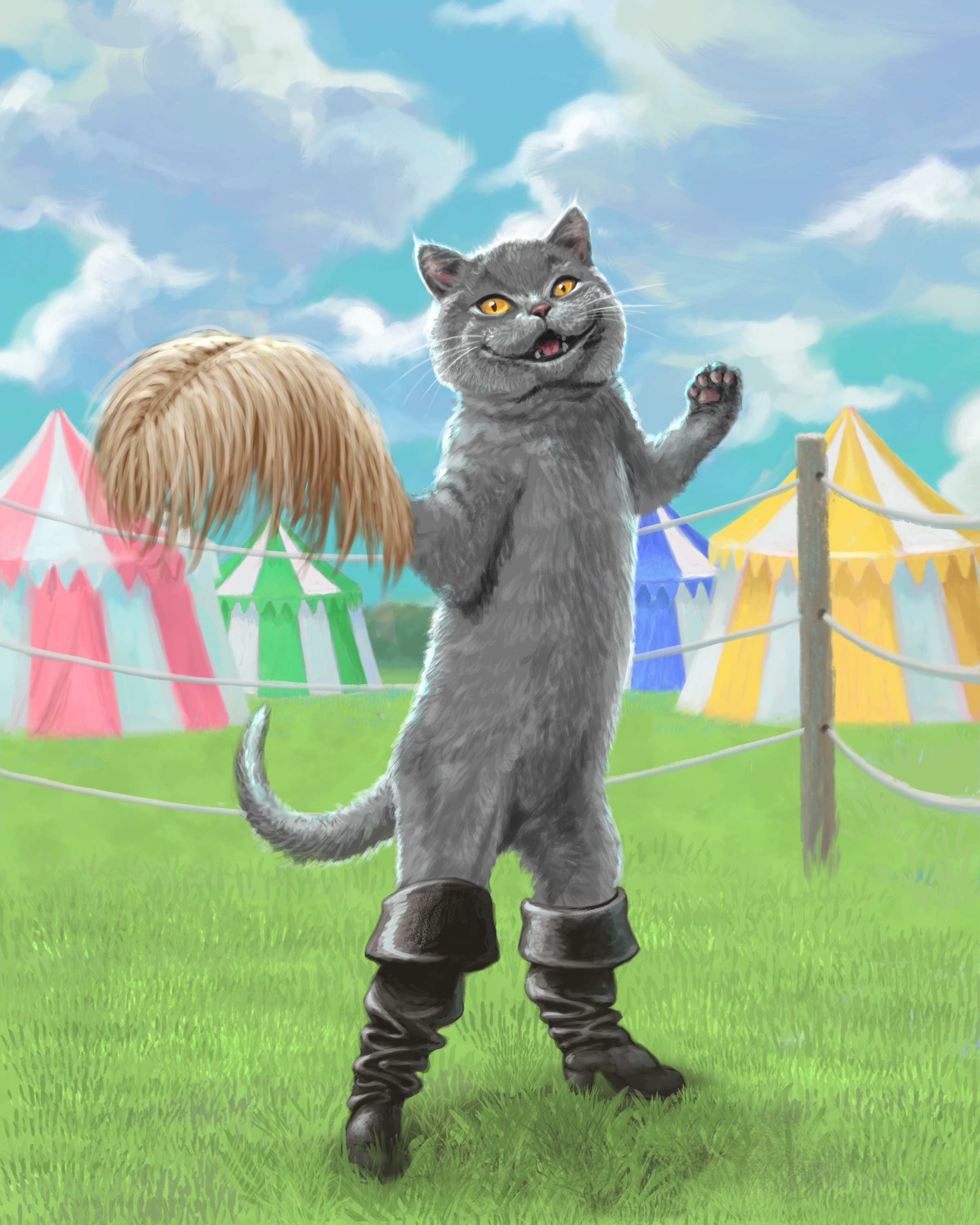 Puss challenges you to a duel…to the first laugh! Indie RPG interior art.
