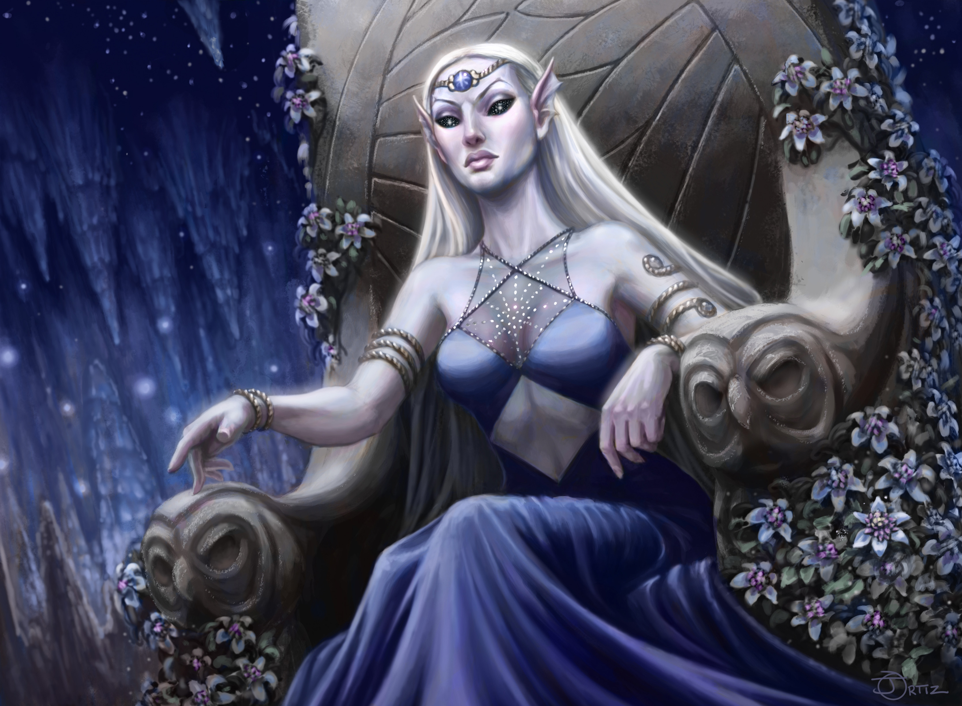 ‘Queen Lhiannon’. The Queen of the Caverns of Twilight Resplendent. Indie RPG product cover art.